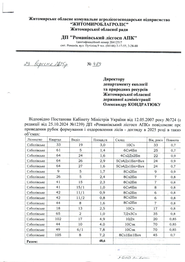 Довідка про ДП "Романівський лісгосп АПК" по підсумках роботи за 9 місяців 2018 р.